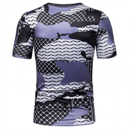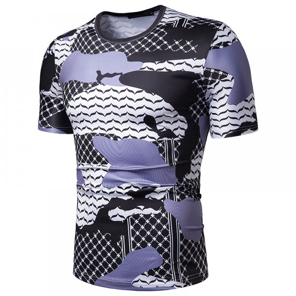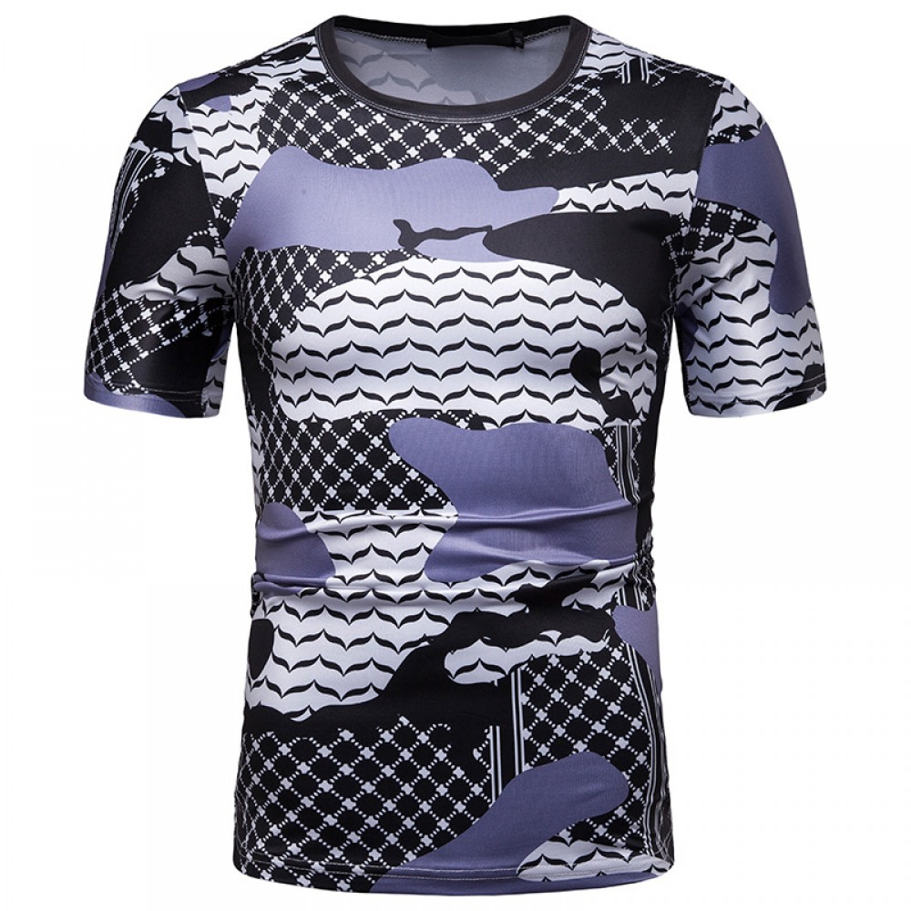 New Summer Men's Color Matching Print Short-Sleeved T-Shirt