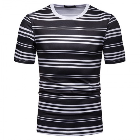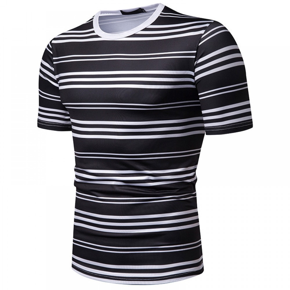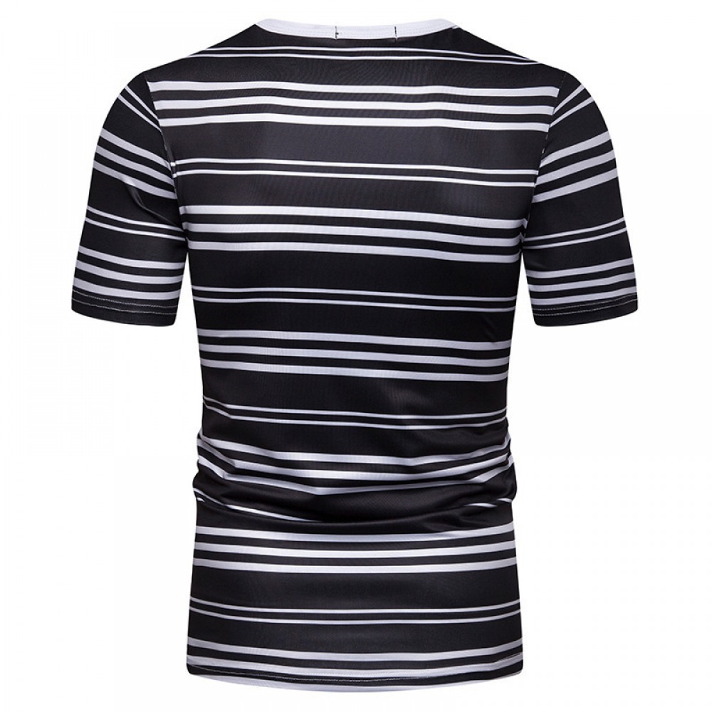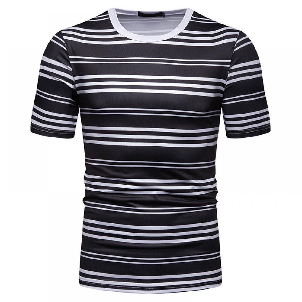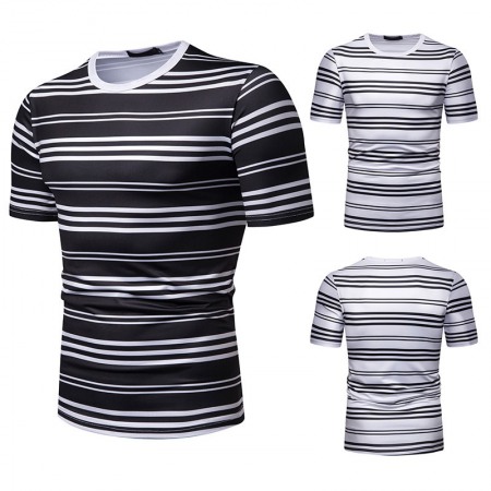 New Summer Men's Short-Sleeved T-Shirt Mens Contrast Striped Slim Casual T-Shirt