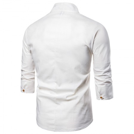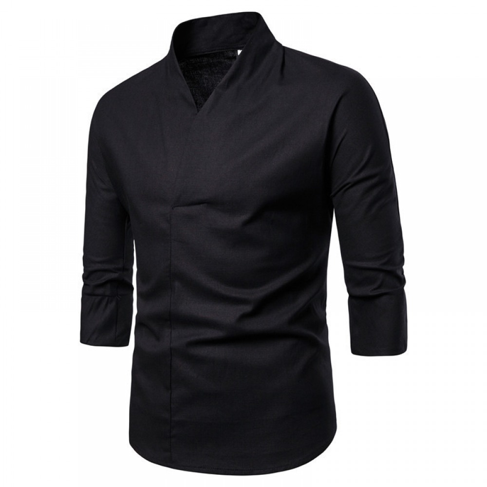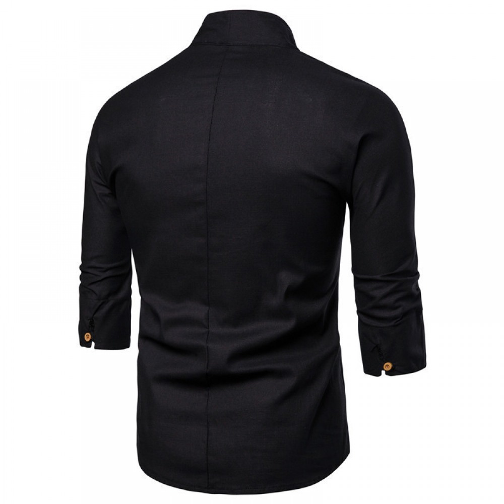 Summer New Style Men's Cotton and Linen Casual Three-Quarter Sleeve T-Shirt Mens Retro Plus Size Embroidery Shirt
