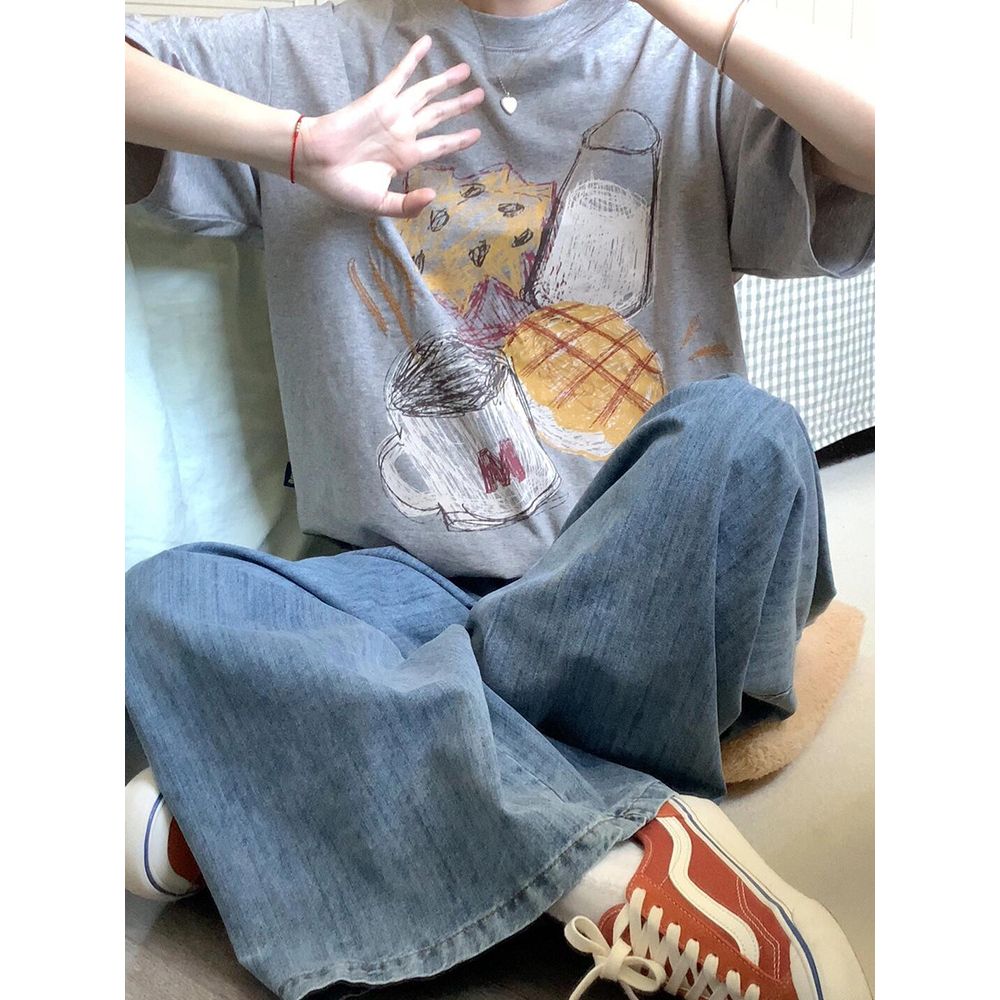 Women's Cotton Short-Sleeved T-Shirt With Retro Print Round Neck And Half Sleeves